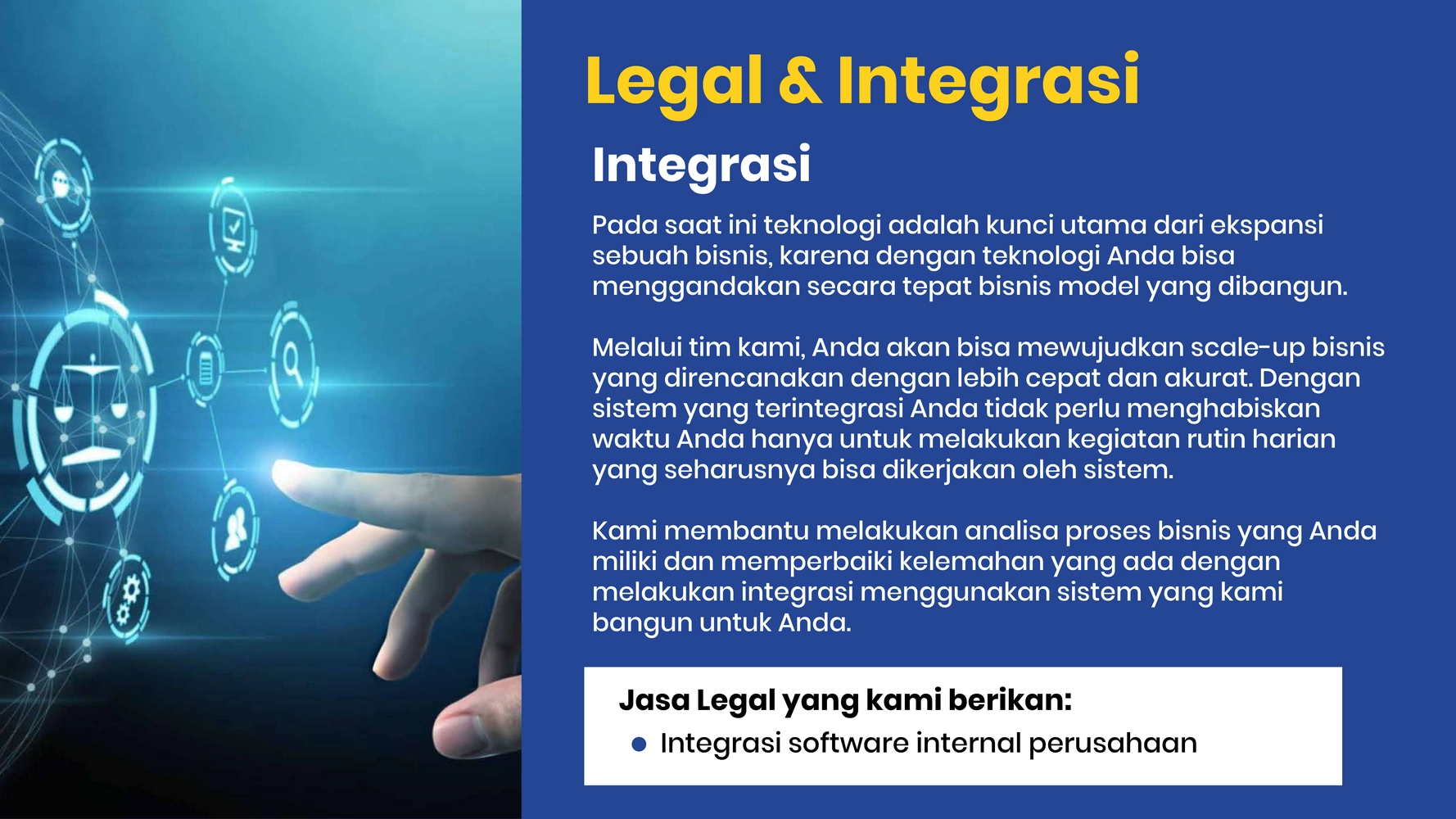 • Menyusun strategi integrasi yang sesuai dengan model bisnis Anda.